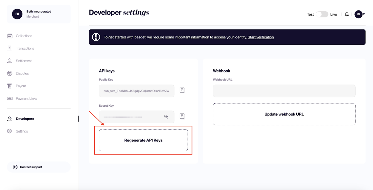 Access to Basqet’s API requires authentication using API keys. This guide will help you generate, use, and regenerate your keys securely.