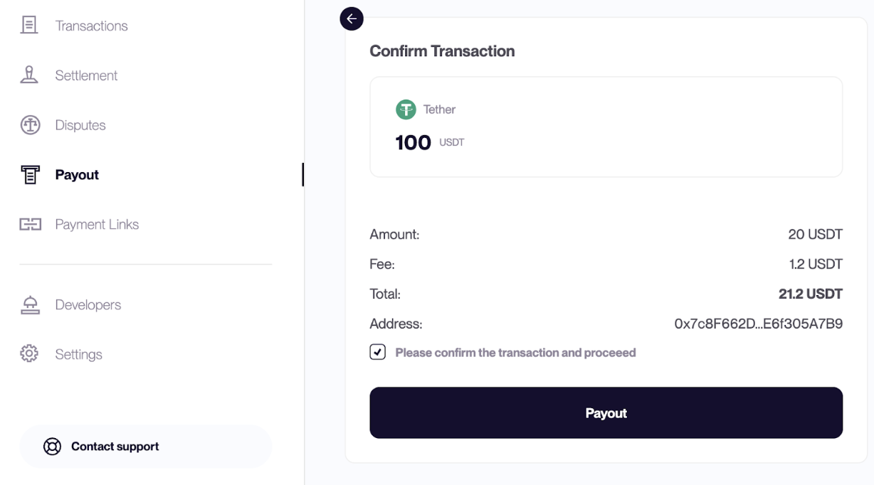- Confirm the payout to complete the transaction